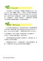 Go 的過去分詞型是 gone,使用於現在完成式,而這裡跟單純過去式來比較,顯得很有趣!我們先來看現在完成式的句型乃是 She’s gone.(She has gone. 的縮寫),而單純的過去式則是:She went. 1. 她已經離開了,現在不在這裡(但是我們知道,她以後會回來)。2. 她走了(但是她以後會不會回來,我們不知道)。