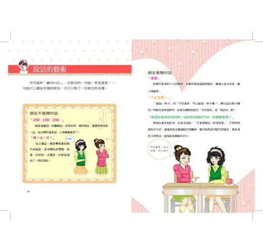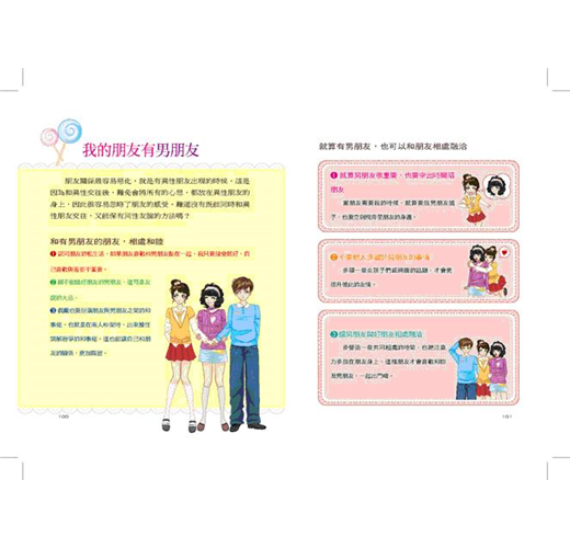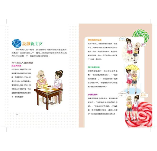 本書就是希望和孩子分享,在交友時可能會遇上的各種狀況,有認識各種朋友類型、交朋友的方法、吵架又能快速和好的技巧、朋友的禮儀等,希望透過輕鬆有趣的分享,讓孩子了解交朋友其實不是一件難事。