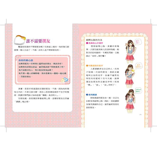 根據研究,小女生在進入青春期後,很容易會開始失去自信,擔心自己的發育、外貌、課業成績、家人相處、交友狀況等問題,這些問題固然都有不同的解決方式,但最重要的方法,就是要先從認同自己、對自己有自信開始。這個階段的孩子,相當渴望獲得同儕的認同,因此,懂得如何經營人際關係,就能累積對自己的自信。