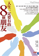 另外,本書提供的英文網站測驗(www.vitalfriends.com.),幫助讀者檢視周遭朋友在個人生命與工作中,各自扮演著哪八種不可或缺的朋友角色【這八種角色包括:推手(Builder)、支柱(Champion)、同好(Collaborator)、夥伴(Companion)、中介(Connector)、開心果(Energizer)、開路者(Mind Opener)、導師(Navigator)】。