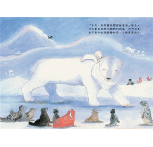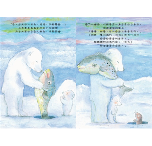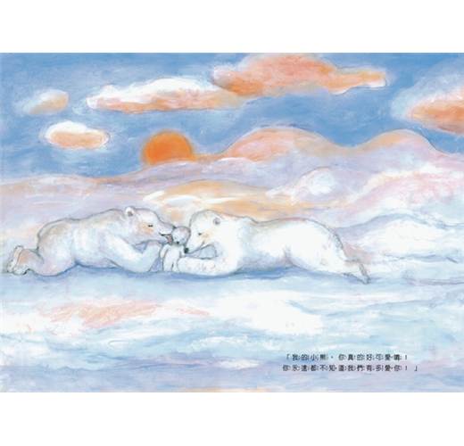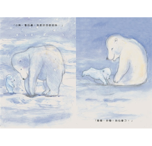 小北極熊在爸爸媽媽呵護下幸福快樂的成長。有一天,突然一聲巨響,浮冰要沉了,爸爸媽媽保護著小熊,幸運的找到一塊浮冰,可是浮冰漸漸融化,無法容納他們三個,所以爸爸媽媽只好離開小熊去尋找其他的浮冰。年幼的小熊等不到爸爸媽媽,又不會捉魚,甚至還遇到了暴風雨,掉入海中,幸好小海豹救了他,靠著小海豹和守護星的協助,鼓起勇氣的小熊終於找到了爸爸和媽媽。