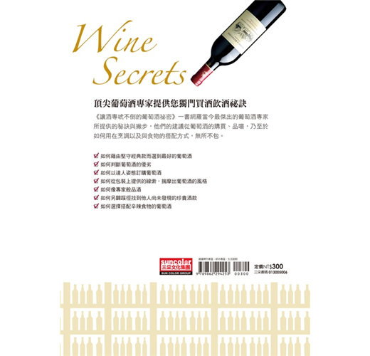 《讓酒專唬不倒的葡萄酒祕密》一書網羅當今最傑出的葡萄酒專家所提供的祕訣與撇步,他們的建議從葡萄酒的購買、品嚐,乃至於如何用在烹調以及與食物的搭配方式,無所不包。