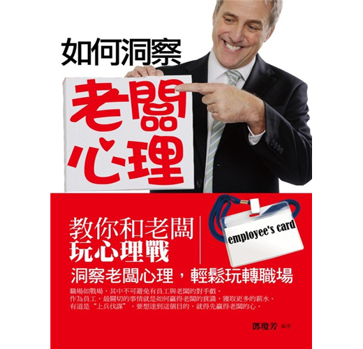 而《如何洞察老闆心理――教你和老闆玩心理戰》一書的推出,就是針對員工與老闆進行心理博弈的諸多方面,幫助員工與老闆打好心理戰。全書分六個部分:戰前熱身――心理戰的潛臺詞;心理攻堅戰――攻入老闆內心,獲取老闆賞識;心理防禦戰――守住在老闆心中的位置,在職場立於不敗之地;心理遭遇戰――遭遇不同性格老闆的應對招數;加薪心理戰以及心理戰雷區。第一部分戰前熱身,是將老闆們在心理戰中慣用的潛臺詞提煉出來,揭穿老闆玩心理戰的小伎倆,為後面的諸多心理較量做個熱身。第二到第四部分,即心理攻堅戰、心理防禦戰、心理遭遇戰,是根據和老闆打心理戰的不同階段,有針對性的論述。加薪心理戰這部分可以說是員工們最關心的地方,在這裏,本書著重分析了員工加薪的條件,加薪談判的心理戰技巧,以及加薪失敗如何收場,讓員工在與老闆圍繞加薪進行心理博弈的時候贏得先手。最後,本書推出的是心理戰雷區,旨在警示員工,老闆的那些心理禁區,是我們不可觸及的,從而保證員工在職場中的安全。