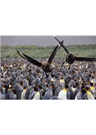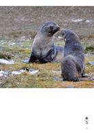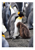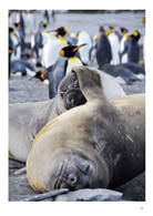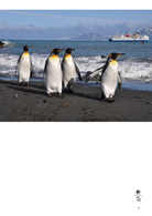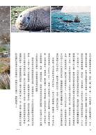 「我和企鵝相遇在泥濘中,我小心翼翼的走,企鵝們也走的亦步亦趨,有的沒踏穩便滑倒在泥濘之中,潔白的羽毛沾了泥土,混身像剛做了泥巴浴的小孩,搖搖晃晃地在風雨中前進。」麗如化身為十幾萬對國王企鵝中的一隻,加入了牠們的大合唱。誇張的是,化身為企鵝的她,竟被一隊四隻的海豹家族狂追,嚇到魂飛魄散,看到這一幕,我忍不住哈哈大笑。