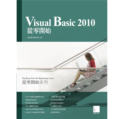 編寫本書的主要目標是讓初學者能快速進入Visual Basic 2010程式設計的殿堂,將所學應用於職場上而編寫的教科書。透過書中精挑細選的範例程式學習程式設計技巧,使得初學者具有紮實和獨立程式設計能力,花費最短的時間,獲得最高的學習效果。本書內容由淺入深涵蓋範圍如下: