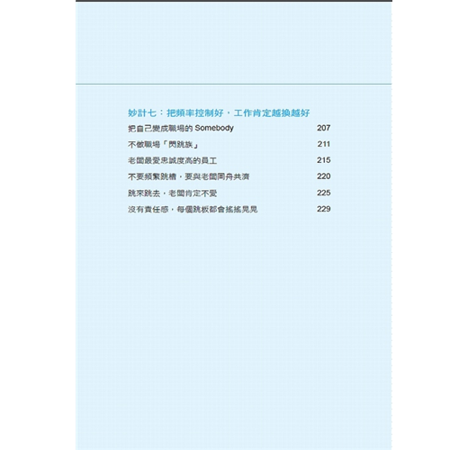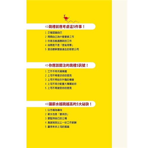「年輕的職場人在計畫跳槽時,請謹慎、謹慎、再謹慎,千萬別衝動去跳槽,在跳之前不妨先翻閱本書,閱讀它,會讓你受益終生。」