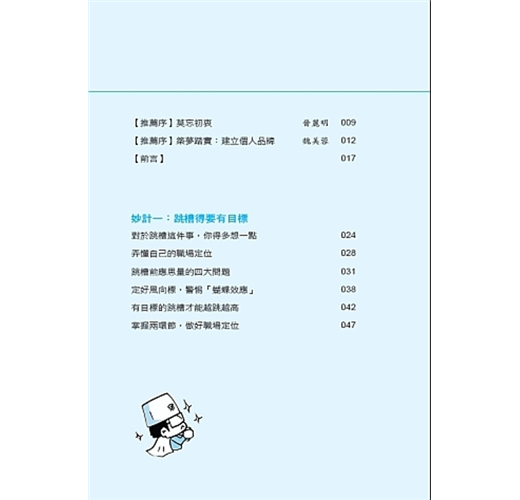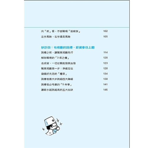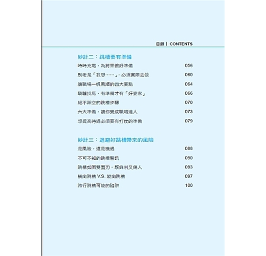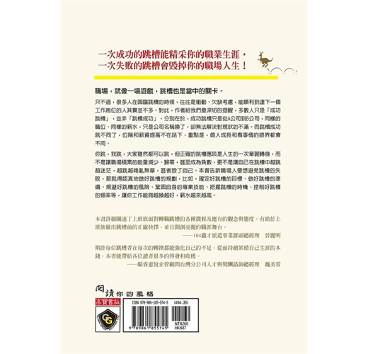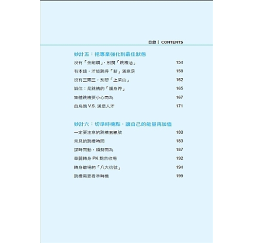 只不過,很多人在面臨跳槽的時候,往往是衝動、欠缺考慮,能順利到達下一個工作崗位的人其實並不多。對此,作者給我們最深切的提醒,多數人只是「成功跳槽」,並非「跳槽成功」。分別在於,成功跳槽只是從A公司到B公司,同樣的職位、同樣的薪水,只是公司名稱換了,卻無法解決對現狀的不滿。而跳槽成功就不同了,位階和薪資提高不在話下,重點是,個人成長和看事情的眼界都會不同。