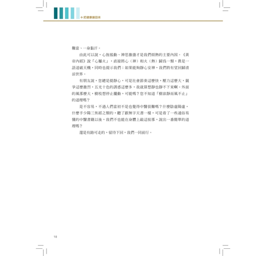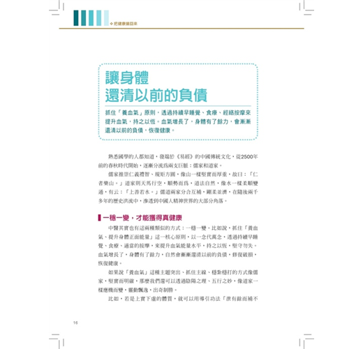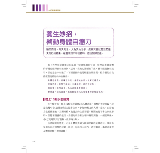 特色一:史上最強,輕易突破「拿錢換命」冏境,成功打造「人生40才開始」的經典養生觀念 三餐不定時,事情多到連喝口水、喘口氣的時間都沒有,