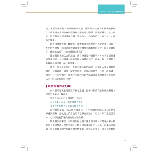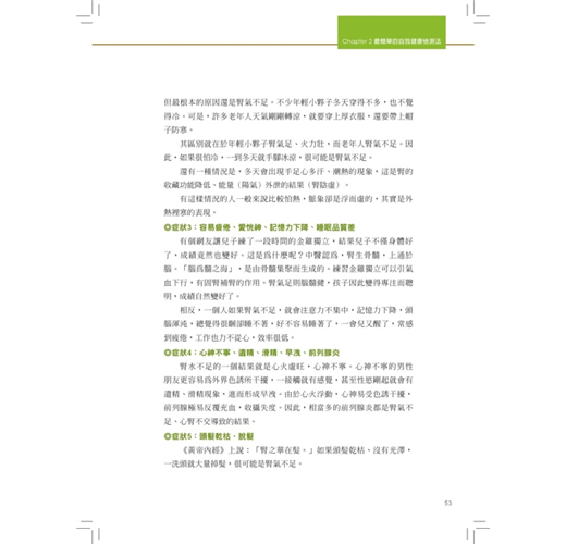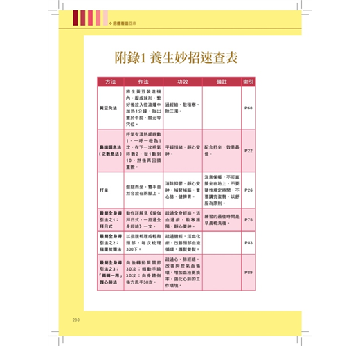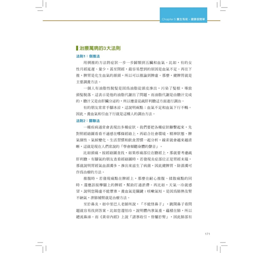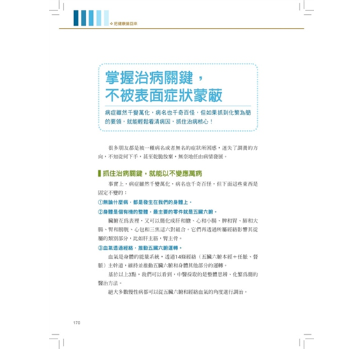 特色三:50招自救處方箋,徹底解放身體療癒能力! 五臟六腑自檢法、腹檢法、全身經絡導引法、兩轉一甩護心法、引血下行三部曲、解悶除煩順氣法、驅寒三部曲……公開中醫百家絕學秘招,讓你徹底了解病灶,從根本治療起,不再被表面症狀牽著鼻子走!