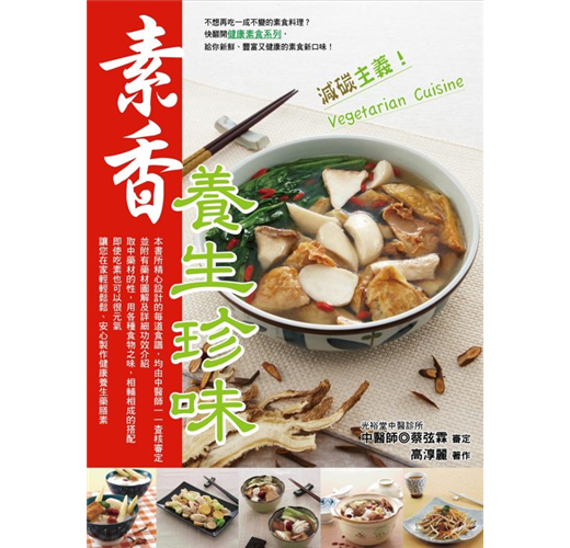 一個平凡的家庭主婦, 對於美食, 尤其是素食, 非常喜歡研究, 只要遇到好吃或新奇的料理, 一定會記住它的味道, 並親自下廚把原汁原味的感覺做出來, 同時也樂於與親朋好友分享成果, 這是作者研發及設計各式美味佳餚的最大動力.希望透過簡單、輕鬆的料理製作方式, 讓您在享受藥膳素的美味時, 也享受健康活力.