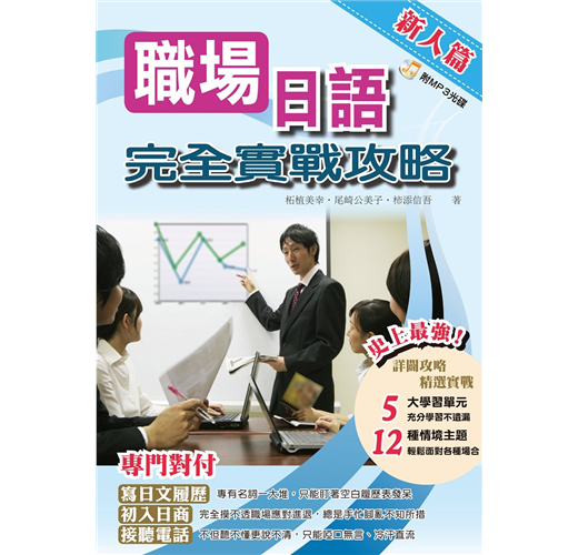 《職場日語完全實戰攻略》新人篇是針對有意應徵日商相關工作,以及剛進入日商公司新人,所規畫的12主題,從填寫履歷表開始,到種種應對客戶之用語。絕對是踏入日商職場必備之基本實用攻略本。
