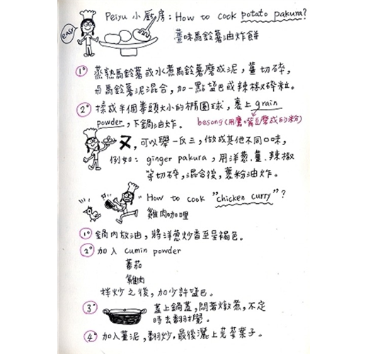 1. 書中收錄作者Peiyu精緻的素描和水彩畫作品,並收錄當地常民生活的簡單食譜
