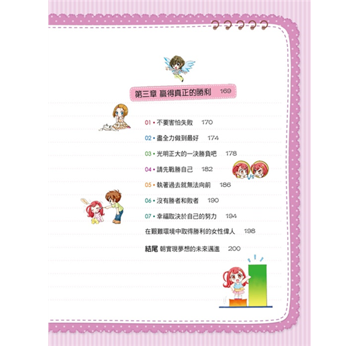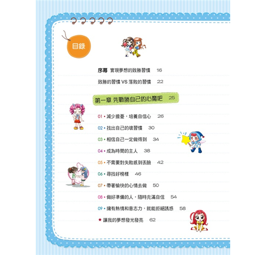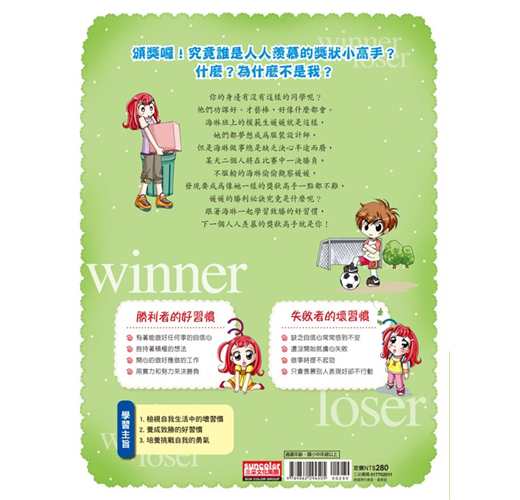這本書中的主角~海琳,雖然常常犯錯,屢屢失敗,但卻努力想讓自己成為一個面對任何事情都能盡心盡力的人,並學習獲得真正勝利的方法。取得真正勝利的方法比你想像中的還要簡單,只要從生活中的小習慣開始著手,很快的你就能改變了。和海琳一起培養能讓自己贏過對手、戰勝自我,並實現夢想的致勝習慣吧!
