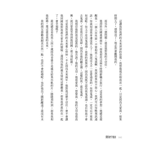 .男人寫愛情,走的是一條說真話的鋼索。說少了,太假不好看,對讀者也沒幫助;說多了,血淋淋的現實太殘酷,又沒有讀者喜歡看遊走在真與假