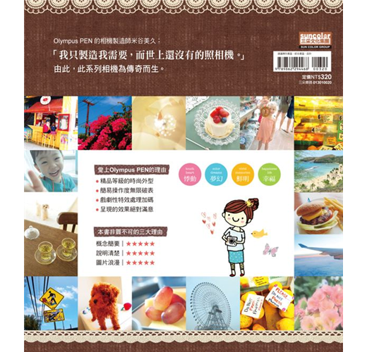 它不只擁有可愛時尚的精品級外型,同時搭載數位單眼的優異高畫質寫真成像,更重要的是可以輕鬆更換各種廠牌、不同倍數或是廣角高階等鏡頭的OLYMPUS PEN系列,不只是深受女性的喜愛,就連專業的攝影師也同樣在工作時使用OLYMPUS PEN系列的相機!連專業攝影師都愛不釋手,妳還有甚麼理由拒絕按下它的快門?