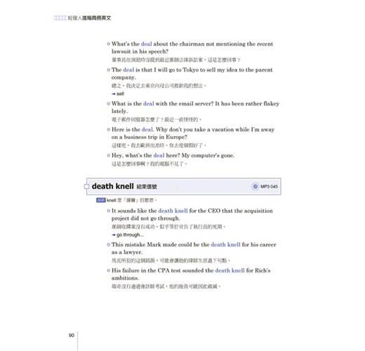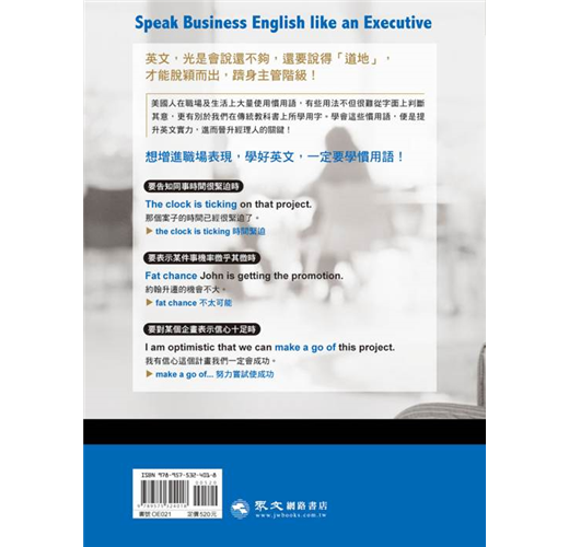 像這樣的用法在美國人的對話中經常出現,尤其在商務場合中,職場人士如果因為聽不懂、看不懂、答非所問,不但會導致自己的專業能力被質疑,甚至可能錯失升遷的機會。所以當我們已具備了基礎的商務英文能力後,如何將聽、說、讀、寫升級為更「道地」的英文,便是進階過程的重要關鍵!