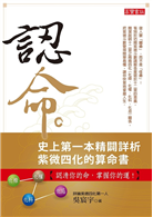 「認命」這一本書從掌中排盤開始教你,排盤五部曲,主級星,次級星(共約三十四顆星)的星情論述,格局,物化,類化,四化論述,命宮四化,十二宮宮干四化論述,從求學、婚姻、事業、老死等精論,可以讓讀者完全了解紫微斗數的奧妙在哪裡,也讓讀者了解如何踏進紫微斗數的大門,甚至踏進紫微斗數的心臟深處。