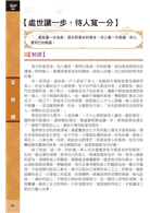 ○古今鮮活實例;搭配可愛有趣的插圖的編排方式,讓讀者讀完一個跨頁,即學習到一個解決人生難題的妙法。
