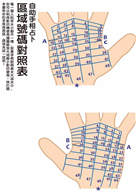不必辛苦地了解手紋走勢所代表的象徵,利用透明板上的區域碼,直接對照即可。