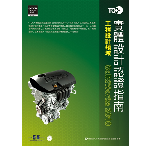「TQC+實體設計認證指南SolidWorks 2010」,係為TQC+工程領域之專業實體設計能力鑑定。亦為考核實體設計專業人員必備專業技能之一,以「工程圖學與機械製圖」之專業能力作為基礎,再加上「電腦輔助平面製圖」及「實體設計」之專業能力,藉此為企業提升專業設計人才之層次。