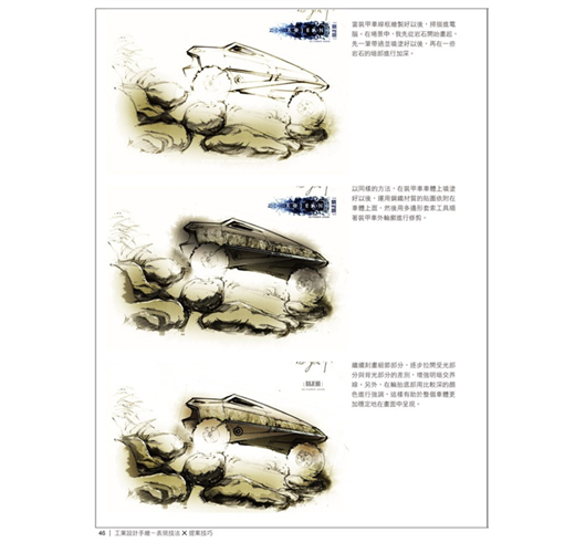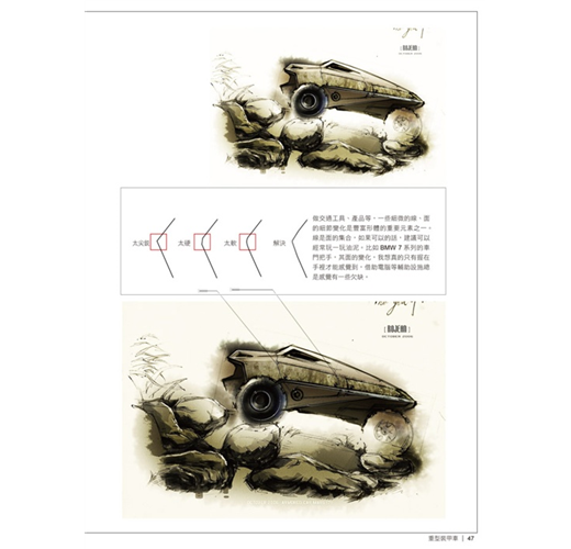 *有經驗的設計人員:從線稿到麥克筆潤色的整套過程分析;交通工具及3C產品的繪製步驟;如何從設計草圖至二D、三D,以及實體模型製作的過程講解。