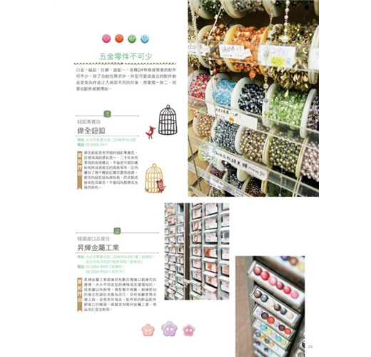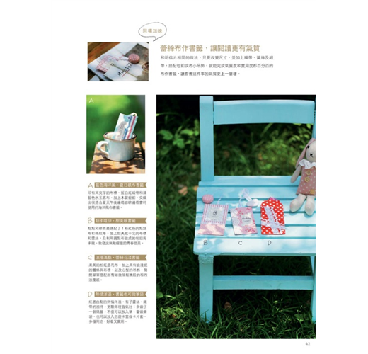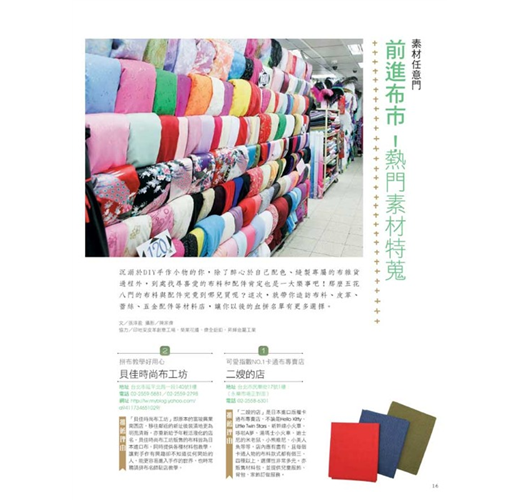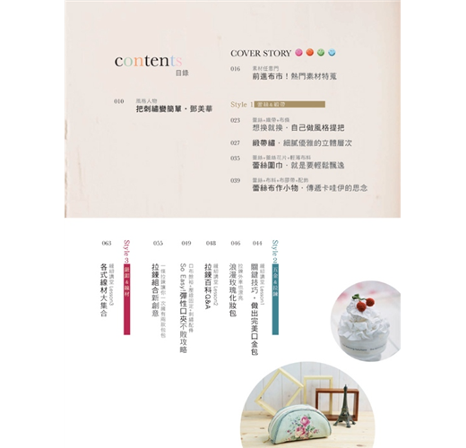 蒐集各種布作素材是手作族的共同愛好和持續關心的焦點,好看對味的配件總是能夠妝點出布雜貨的手創精神,本期將素材串成一系列的變化專題,首先要帶大家來一趟素材漫步,看看最近又出了什麼好看好用的配件素材,包括織帶、緞帶、鈕釦、皮革、五金…等材料,不僅要教你買到好東西,更要知道如何將它們用在布作上,從基本技巧開始,提點各種布作一定用得上的技法。