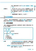 其中Part1的「概念」篇,藉由簡單易懂的解說與生動有趣的插圖,讓讀者得以快速掌握文法綱要。接下來的Part2「理解」篇,以例句搭配邊欄提示,引領讀者循序了解各文法規則的運用。最後的Part3「進階」篇,則適時指出一些容易混淆的觀念或使用上的特別注意事項。像這樣由淺入深的引導式學習堪稱本書最大的特色。