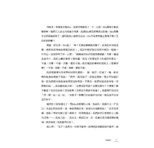助理說:「不知道,只知道電話背景聲音很混亂!我一有任何消息就立刻告訴你!」小郭追過來說:「你還杵在這裡幹什麼?你可以找某人、某人跟醫生有關係、某人熟上海,你現在很混亂,千萬不要自己開車!」我收好東西就往電梯口衝,滿口答應小郭:「好好好!」