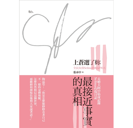 這本書或許是我能讓這考驗更有意義的方式之一。我想獻給Selina身邊的親友,包括任爸、任媽、Hebe、Ella及華研團隊等,當然還有我自己,我們一起通過了這無預警的考驗,起碼對我而言,既然不可能忘掉,誠實坦然地面對談論這考驗,才是真正能療傷的方法。