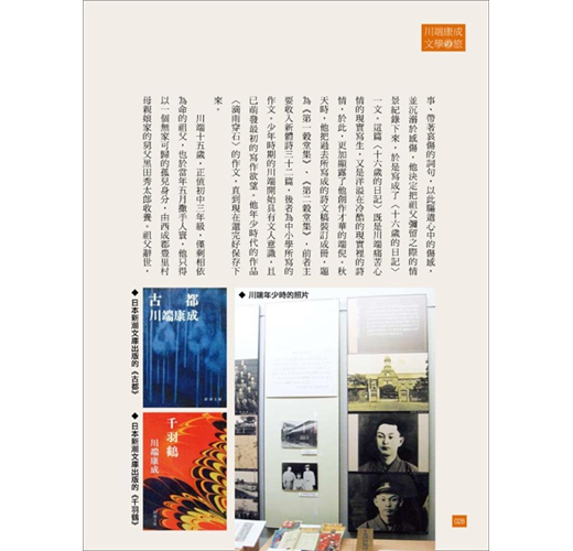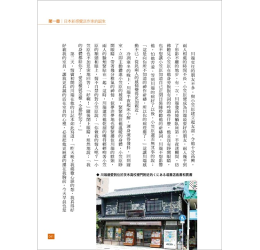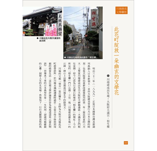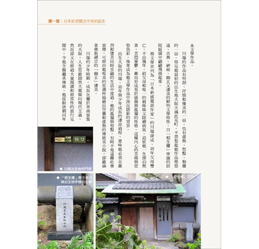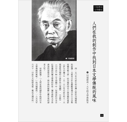 ‧作者以文學旅行方式,親自前往京都、大阪、伊豆、鎌倉、長谷、東京…… 等地,從榮獲諾貝爾文學獎的小說《雪國》、《千羽鶴》、《古都》……等作品,探討川端筆下的細膩人性與日本文學之美。