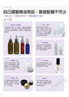 目前台灣保養品市場百家爭鳴,各大廠商推出的產品可說琳瑯滿目。但是,如果自己可以學會運用「正確而簡單」的方法就做出保養品,不僅省錢、天然,更能針對個人肌膚狀況對症下藥,配合精油的功效,達到療癒、改善的目的,真是事半而功倍。