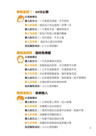 *提供生活實例分析,能夠引發讀者共鳴:‧提供多個容易發生在現代人身上的懶惰習慣,能夠引發讀者共鳴*提供解決懶惰的妙招,兼具實用:‧具體提供解決懶惰的妙招,能讓讀者改善自身缺點*提供懶惰的評量表,方便讀者自我檢測:‧提供懶惰的評量表,使讀者能更加了解自己的懶惰指數