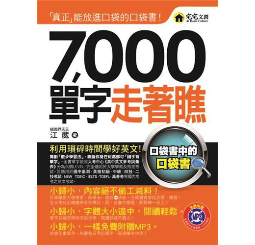 ▓「真正」能放進口袋的口袋書坊間標榜的口袋書,往往都是大大的一本,根本放不進口袋。要不就是為了能放進口袋,而縮減了該有的內容。《7,000單字走著瞧》為想要利用瑣碎時間學好英文的人量身打造。小歸小,一樣可以五臟俱全!