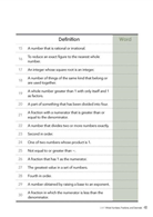 又例如,我們從小就學過的「分數(fraction)」,你知道「分母」、「分子」怎麼用英文說嗎?