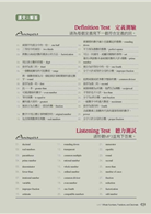 美國學生在課堂上聽課一樣的感受。每個單元還附有定義測驗及聽力測驗,不但能測試讀者對於一個單元的理解程度,亦能測驗自己對於字彙的理