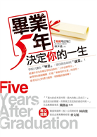 《畢業五年決定你的一生》這本書指出了決定我們未來的八個關鍵詞:信心、自我定位、學習、複製、時間、人脈、心態、逆境。書中從這八大層面出發,清楚闡述如何在畢業後的五年間,建立正確的工作態度,為自己打造更好的未來。