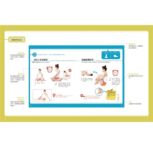 ◆動作簡單易學,容易持之以恆。內附柔軟度指數、舒眠指數等各式量表,幫助你檢測自身健康。