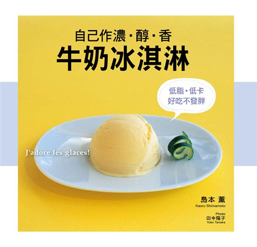 本書是我十分因為在意體重及膽固醇增加而開發而成的。以牛奶代替鮮奶油的「低脂冰淇淋」為主題,並以「使用有益健康的食材」作為主要訴求。收錄在書中的「水果與蔬菜冰淇淋」單元,是以我在某電視節目演出時的企劃為藍本,再增添內容所構成的。讓讀者可從中品嘗蔬果的天然甘甜與美味、享受日本豐富的四季風味,接續著饒富島本薰色彩的「法國風&和風冰淇淋」單元。在最後的「馬卡龍冰淇淋」單元,則是我在法國學習時,累積諸多研究所完成的秘傳食譜。若本書也能像《アイスクリーム大好き!》一樣博得讀者的青睞,將是我莫大的榮幸。