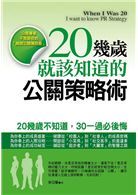 《20幾歲就該知道的公關策略術》就是為年輕人提供的一部公關戰略書。本書從公關的作用、規則開始說起,談到教你快速準確地識人、操控人心的技巧,並且更進一步地談到職場、宴請、談判、銷售、兩性相處等的公關方法,最後為大家提供即時講話的一些技巧以及九型人格提高自己影響力的方法等。本書內容實用,方法可操作性強,且充滿智慧,是20幾歲年輕人必備的公關寶典。
