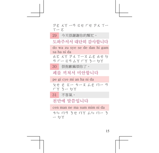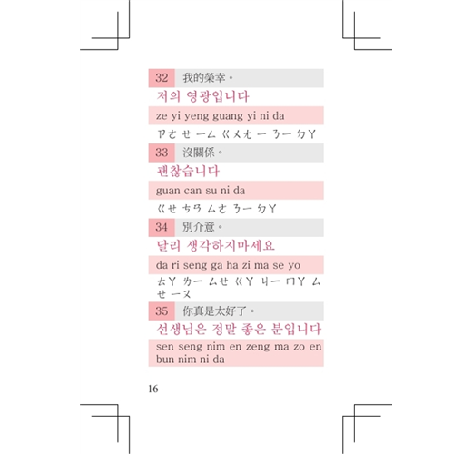 3.兼具中文與羅馬拼音,說韓語好簡單。