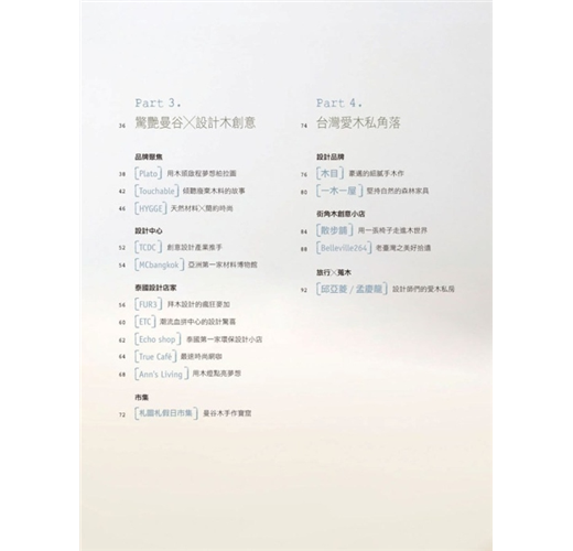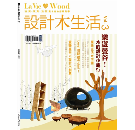另外,夏天來臨了,《設計木生活vol.3》還要帶大家往木之南國出發、木設計的新天地—泰國!泰國設計近年以閃耀之姿驚艷全球設計界,其來自南國的獨特幽默感,為設計注入輕鬆的樂趣,泰國設計除了概念的突破,在材質上也非常善用在地的天然素材--木頭;走趟泰國,讓充滿趣味時尚的設計,wow出木頭新驚喜!