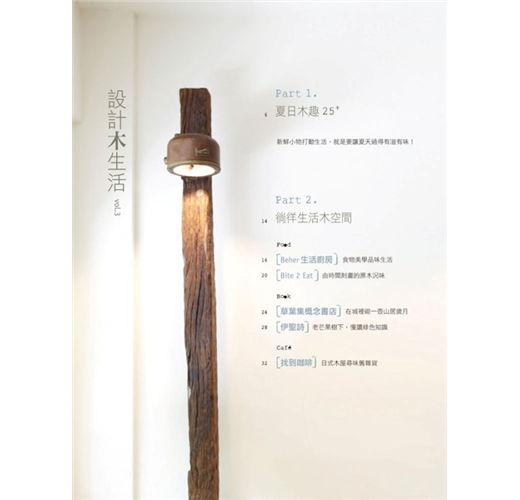 《設計木生活vol.3》踩著生活腳步的足跡,從書店、餐廳、咖啡館、個性小店…等生活空間探訪,有些人懷著一些夢,帶著夢在都市的各個角落生根、滋長,人的夢想在這些空間裡