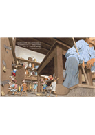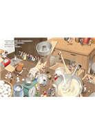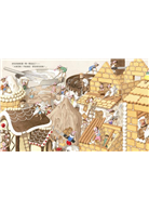 這本帶著食物想像、建築元素,和小精靈傳說的《餅乾城》將令孩子眼晴一亮。當孩子拿到書,會先看到封面上出現的二十多個表情可愛、動作靈活的小精靈,手上各有不同材料、工具,正在餅乾城裡忙碌穿梭。翻開書,進入故事的第一個畫面,孩子們仿佛和家人走進了故事中的餅乾店,挑選著各式各樣的餅乾、點心、蛋糕……然後是表演特技的小精靈,正靈活的在小繩子上上下下;再看看小精靈們拿掃把、搬罐子、秤麵粉、攪拌食物的模樣……更精采的是,故事中餅乾店一家人和小精靈的互動情形。