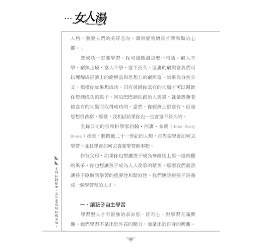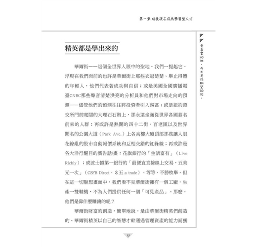 它從學習能力、培養性格、學會獨立、擁有品質、培養創新思維、制定目標、學會吃苦、擁有財商、會花錢、能賺錢等十個方面告訴家長如何培養孩子的金錢思維。