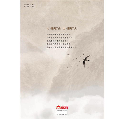 作者用童真的眼光鑑照了人的善良、內省與懺悔,也用皴皺的水墨技巧表現了中橫山巖磅礡的氣勢。而每年春天迴翔於太魯閣的燕子,竟成了耿耿不滅的象...