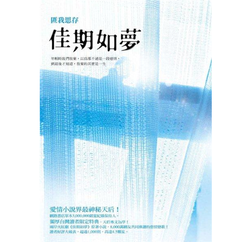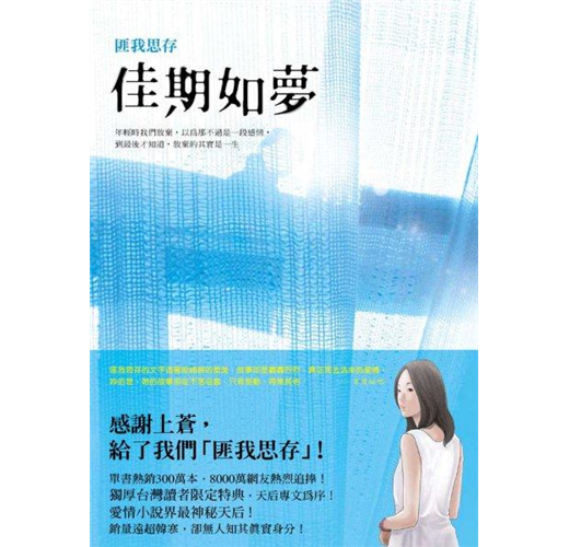 在很長一段時間裡,許多許多讀者都曾經追問我,《佳期如夢》是不是一個真實的故事。我想那是因為,尤佳期是我筆下最接近現實生活的一位女主角。她只是一個平凡又普通的女人,甚至命運對她來講,並不一帆風順,可是她最幸運的地方,就是有兩個男人,深深的愛著她。孟和平和阮正東,他們兩個人也是我筆下最不分伯仲的兩位男主角,他們以各自的方式堅持著自己的感情,正因為是真愛,所以才沒有辦法區分,誰會比誰愛得更多一點點。