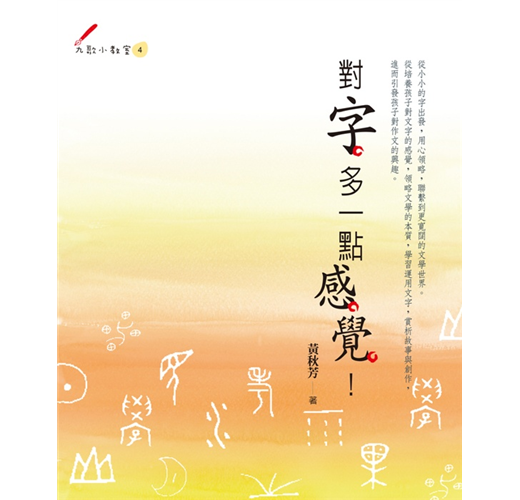 「對字,多一點感覺!」這個書系,就像一場又一場「和字談戀愛」的過程。以「認識一個字的形音義」做起點,深入觀察,停格感覺,自由聯想,透過一本又一本不同切入點的「字書」,有時候,想像一個字的身世故事;有時候,從真實的字裡虛構出擬人的悲歡憂喜;有時候又延伸成歷史的理解、小說的聚焦、大自然的體悟,甚至是文化的薰陶、生命態度的實踐……,從小小的字出發,用心領略,聯繫到更寬闊的世界。 ――黃秋芳