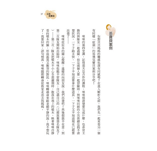 當挫折出現時,有立刻放棄的、預知逃跑的、靈巧偽裝的、不動如山的、玉石俱焚和情緒崩潰等不同類型的孩子;當情緒難以宣洩時,則有火山爆發型、導航飛彈型、借題發揮型、柿子挑軟型和碎念抱怨型的各色行徑。面對孩子這些棘手的行為模式,你曾經嘀咕:家裡的寶貝根本是熟悉各大門派的教養招式,刁鑽難纏的武功高手嗎?你不免想大喊:誰能還我簡單快樂的親子關係呢?