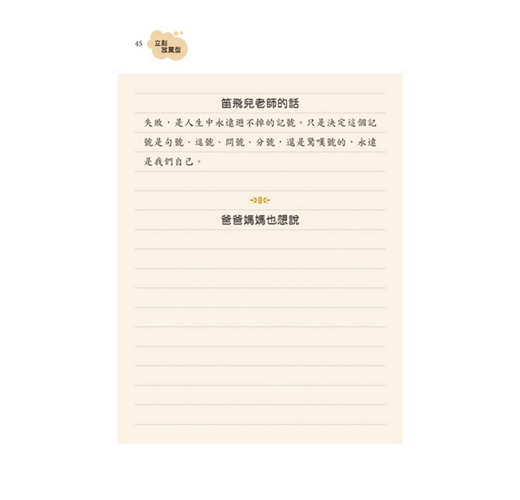 本書獻給與孩子相處,時而幸福感動,時而無助困惑的父母。這是一部可以提升孩子挫折容忍力、增強情緒管理,期待親子雙贏的教養指引!