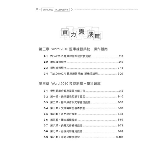 本項測驗開發時透過專家學者及用才單位共同定義技能規範與題型,符合Word 2010軟體之使用特性,能精確評核應考者之電腦文書處理能力。透過精心設計的各領域學、術科分類題庫,幫助讀者快速對Word 2010電腦文書處理軟體操控自如。